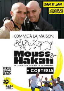 31 janvier 2026(1 évènement) Concert AVEC La Gare - Mouss & Hakim + Cortesia AVEC La gare - COUSTELLET |