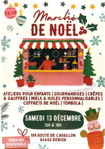 5 décembre 2025(4 évènements) Boite aux lettres du Père Noel Tout le jour Avis à tous les enfants sages C'est le moment de déposer vos plus belles lettres au Père Noël Sa boîte aux lettres est disponible à côté de l'olivier sur la place st Roch à du 5 au 19 Place St Roch Vente de gâteaux et de blé Organisée par l'Amicale des Ecoles de Robion devant l'école de 16h a 17h Ecole de Robion |